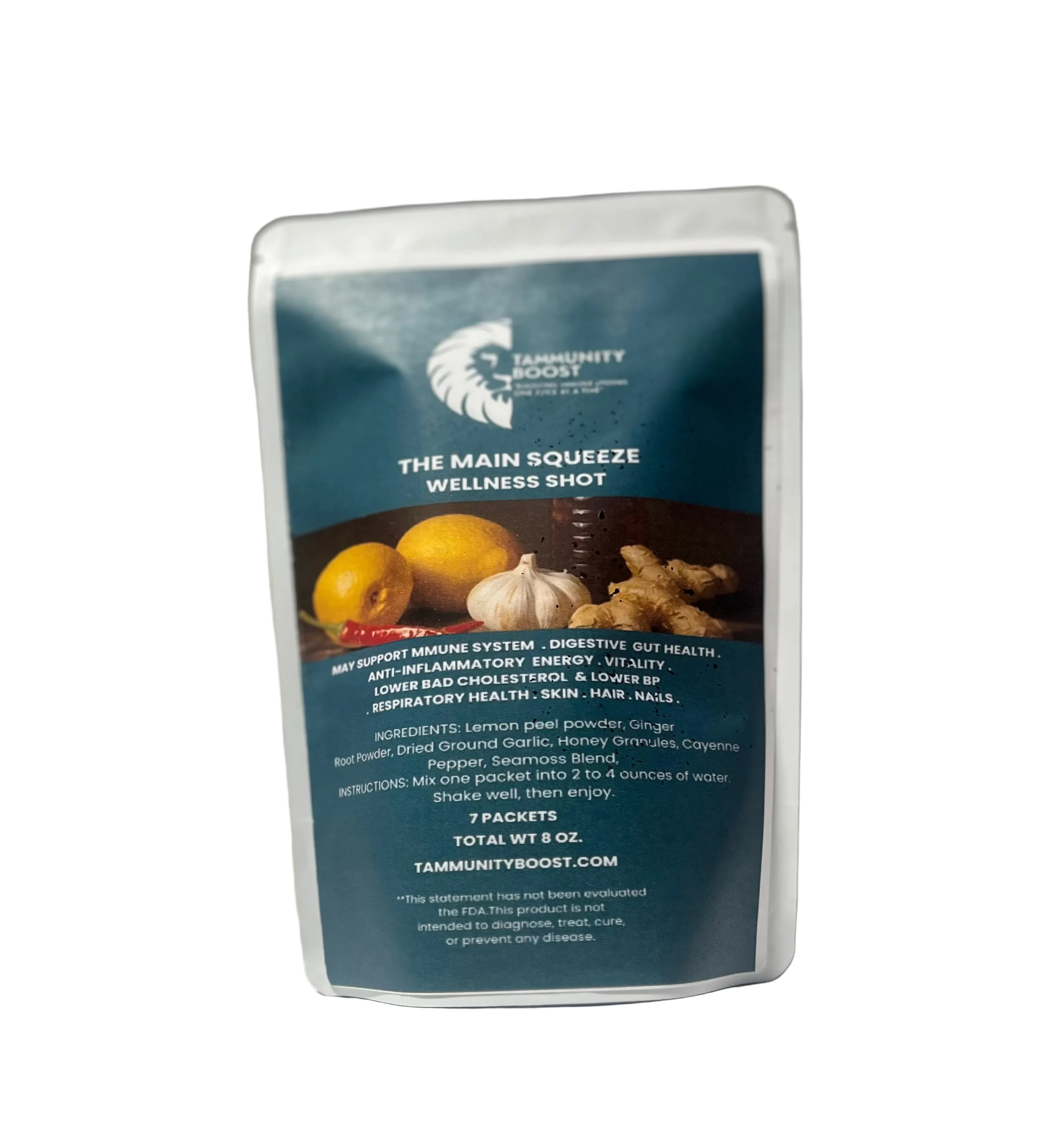 The Main Squeeze is where Tammunity Boost began. Our original, foundational formula and the heavy hitter of them all. It’s therapeutic and functional power shot. It’s designed to support your immune system and power your day.